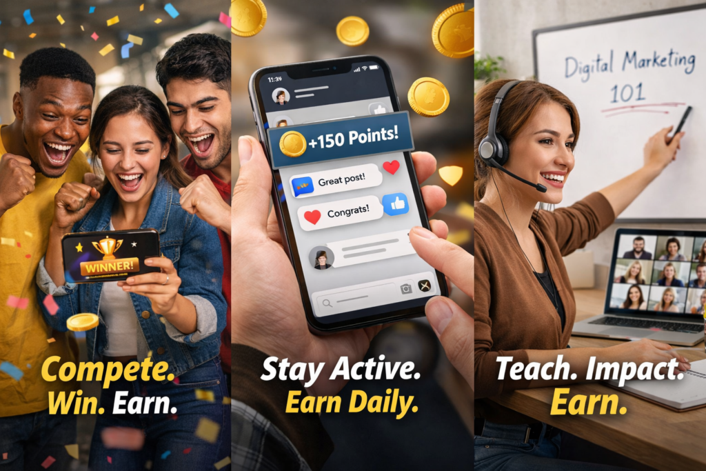 From competitions to engagement rewards and teaching opportunities, the platform creates multiple income streams for users at different levels.